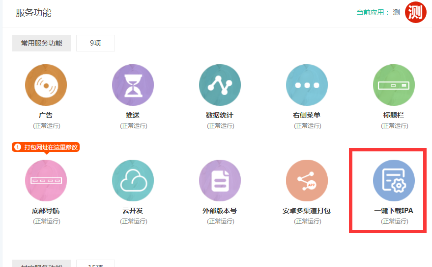在服务功能界面点击一键下载ipa